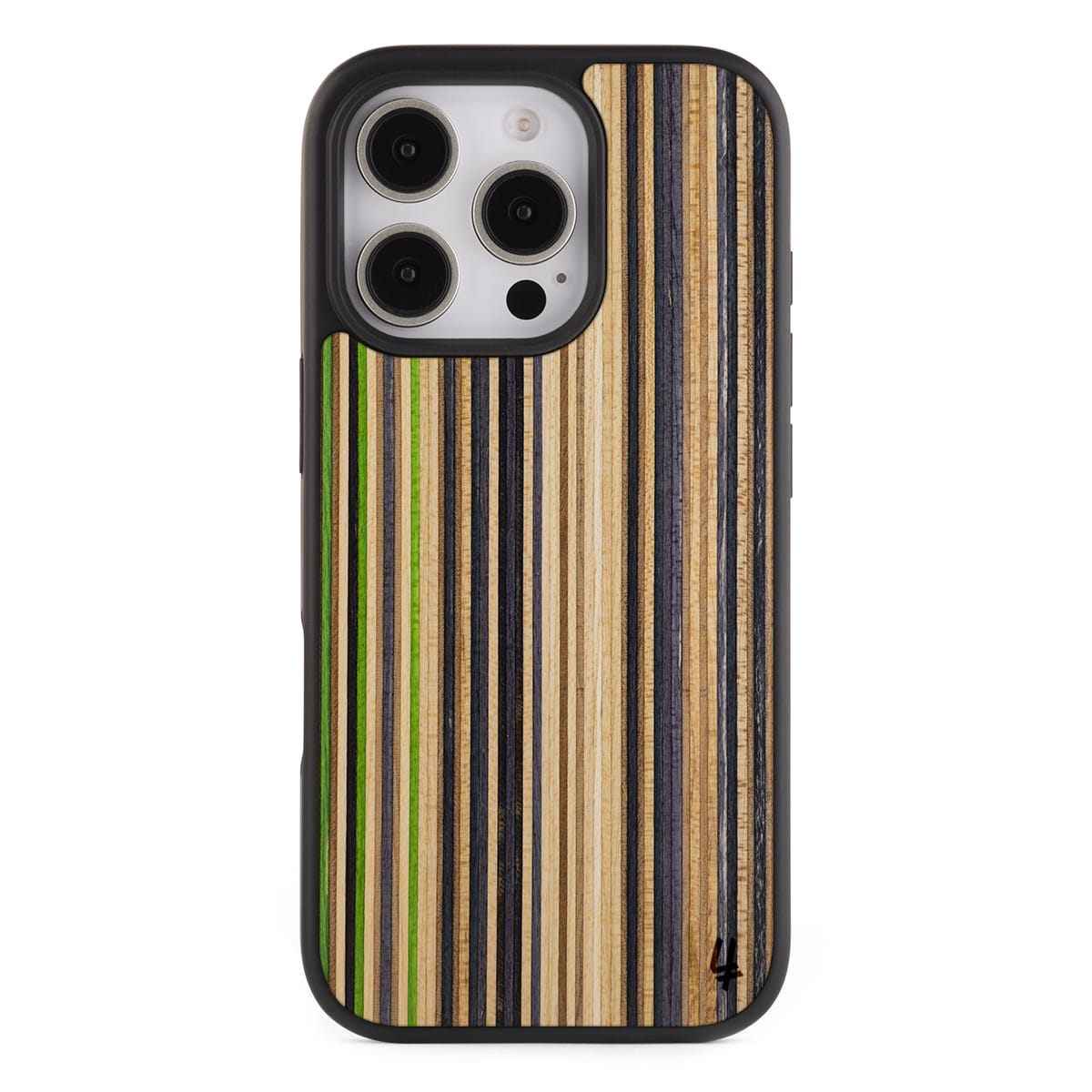 Our cases are handcrafted from nine upcycled skateboards, glued together to form a colorful end-grain pattern. Because the colored layers come straight from the boards, each case has a unique design that carries the spirit of skateboarding. We make only a handful from each batch of nine, and once they sell out, no two will ever be the same—a true limited edition.